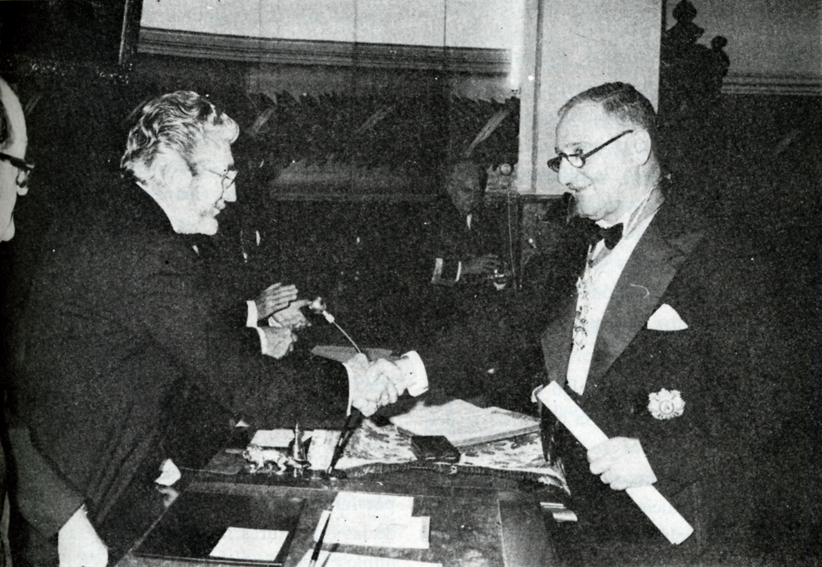 El Prof. Vian Ortuño, Rector de la Universidad Complutense, felicita al Prof. Piga Sánchez-Morate por su recepción como nuevo Académico de Número de la Real Academia Nacional de Medicina.