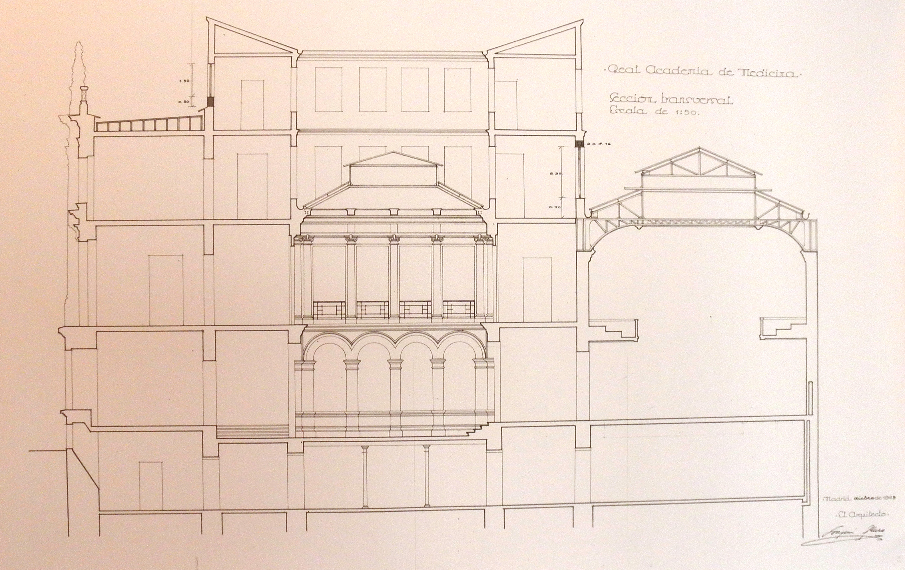 Plano RANM salón actos sección longitudinal
