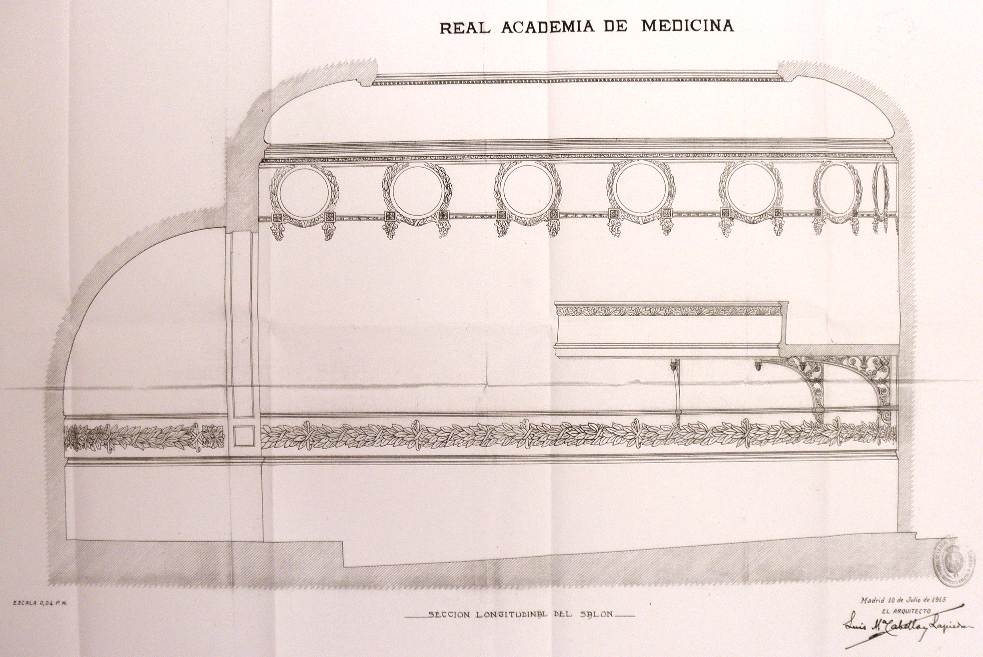 1915 Salón de actos seccion logitudinal planos liquidacion Real Academia Nacional de Medicina