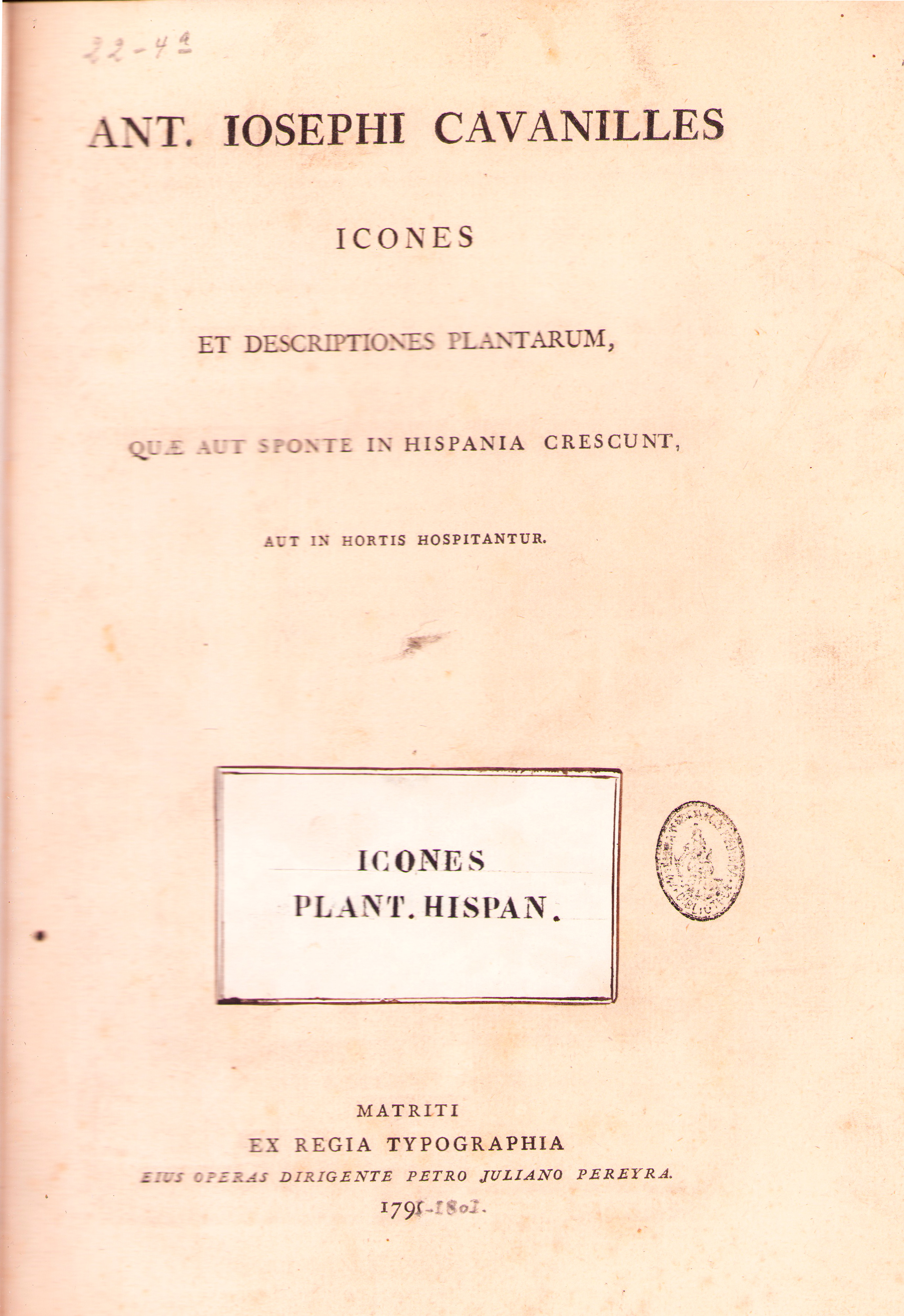 Portada del libro “Ant. Iosephi cav anilles, Icones et desciptiones plantarum”