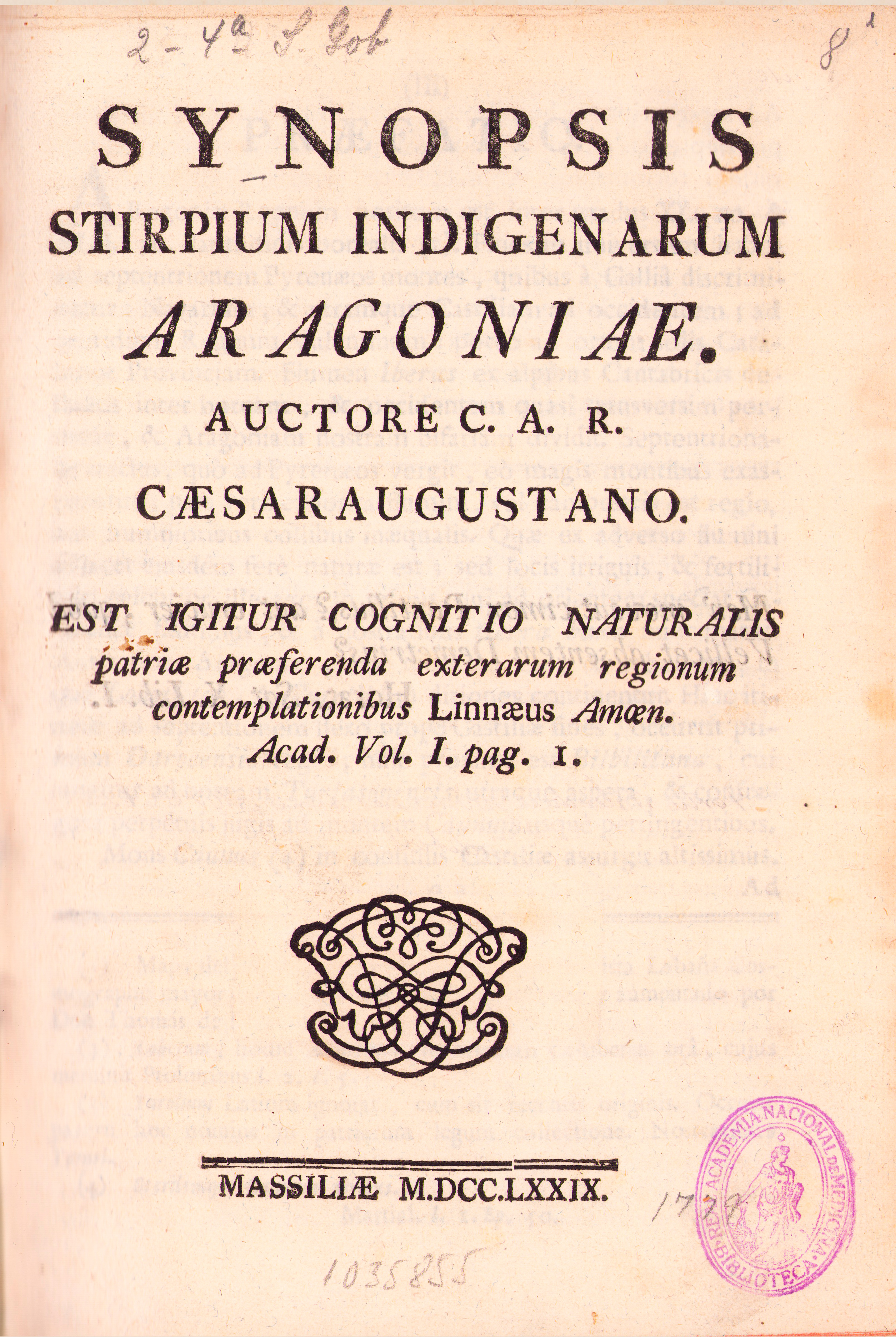 Portada libro: Synopsis stirpium indigenarum aragoniae