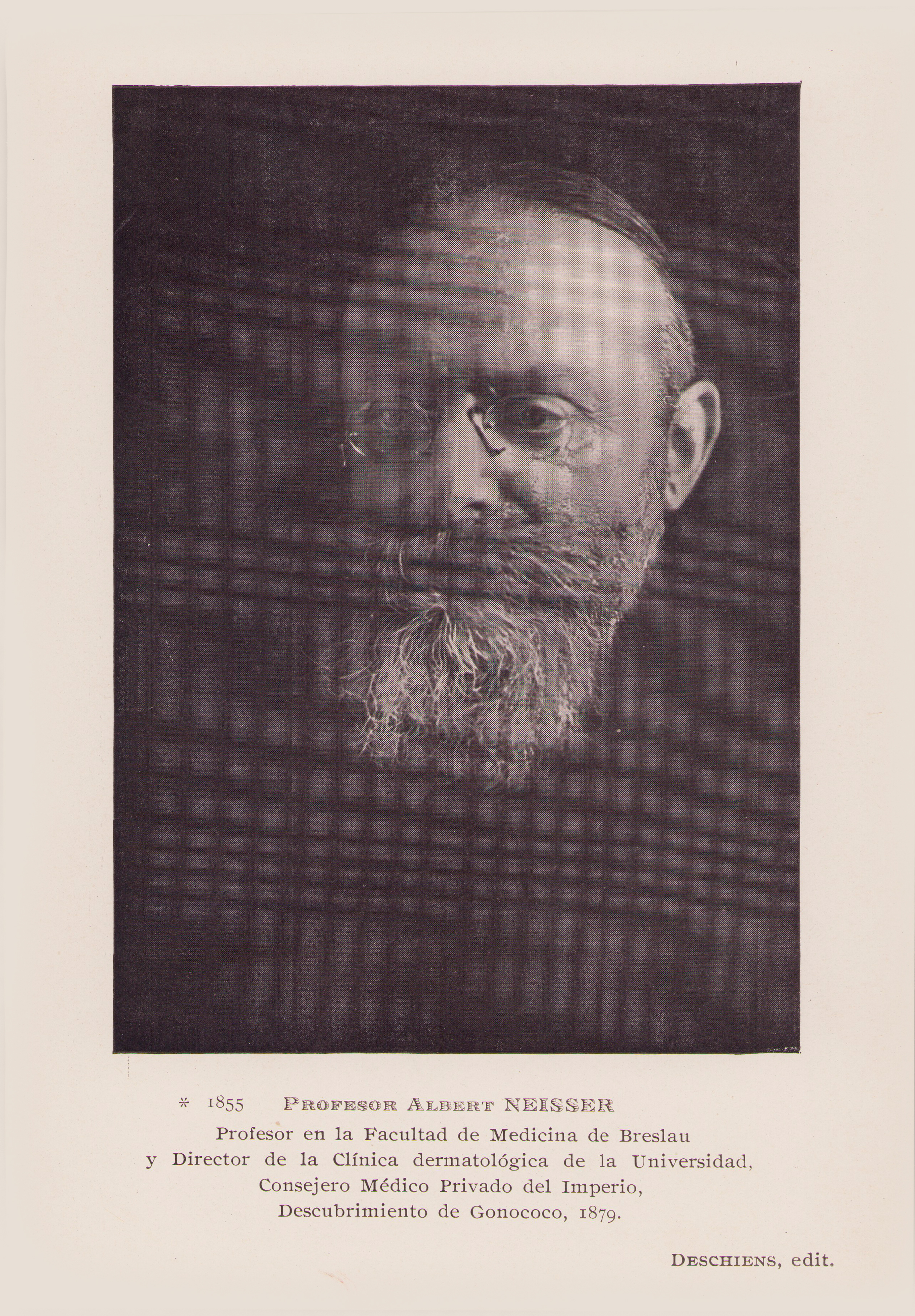 Profesor en la Facultad de Medicina de Breslau y Director de la Clínica dermatológica de la Universidad, Consejero Médico Privado del Imperio, Descubrimiento de Gonococo, 1879.