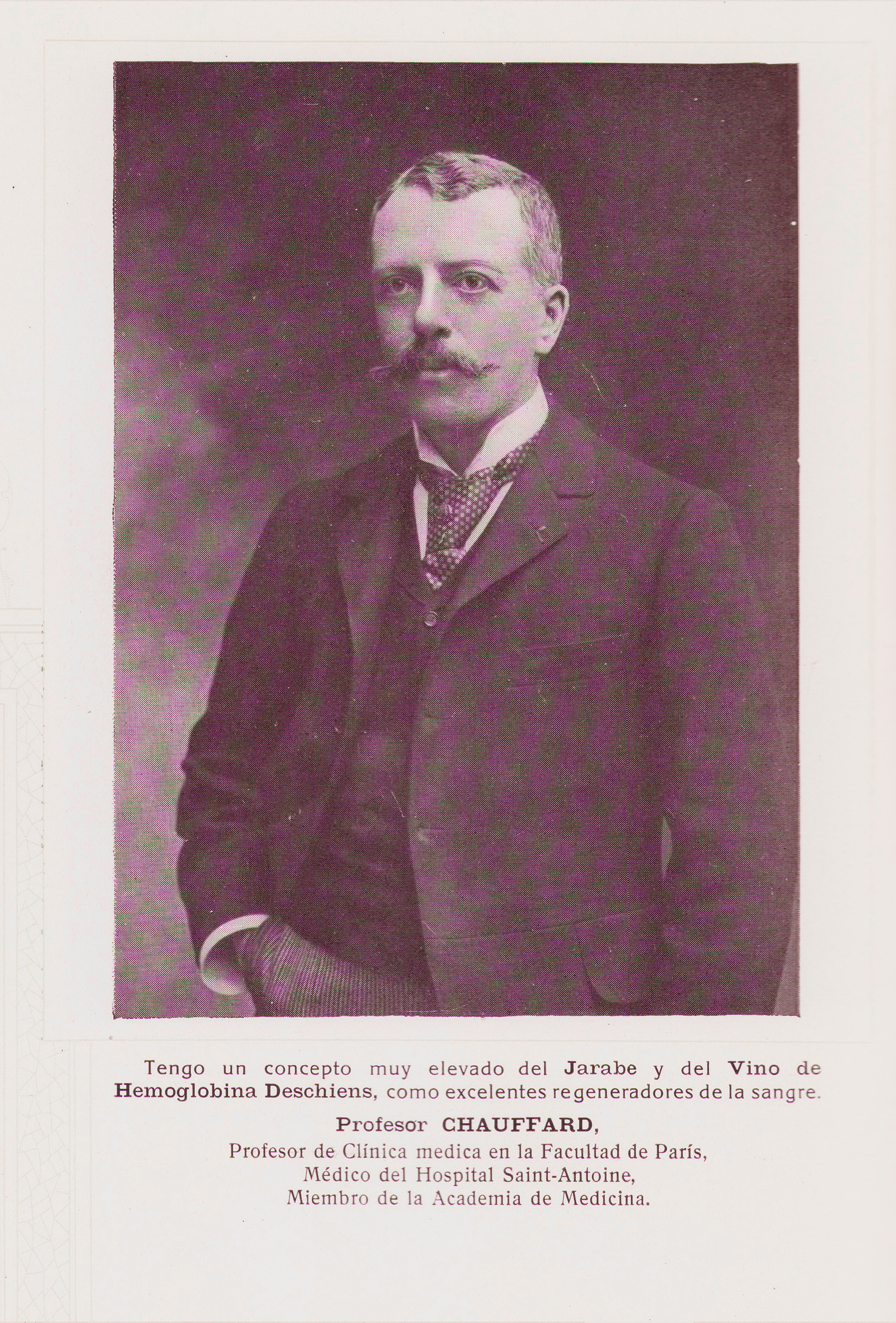 Profesor CHAUFFARD, Profesor de Clinica medica en la Facultad de Paris, Médico del Hospital Saint-Antoine, Miembro de la Academia de Medicina.