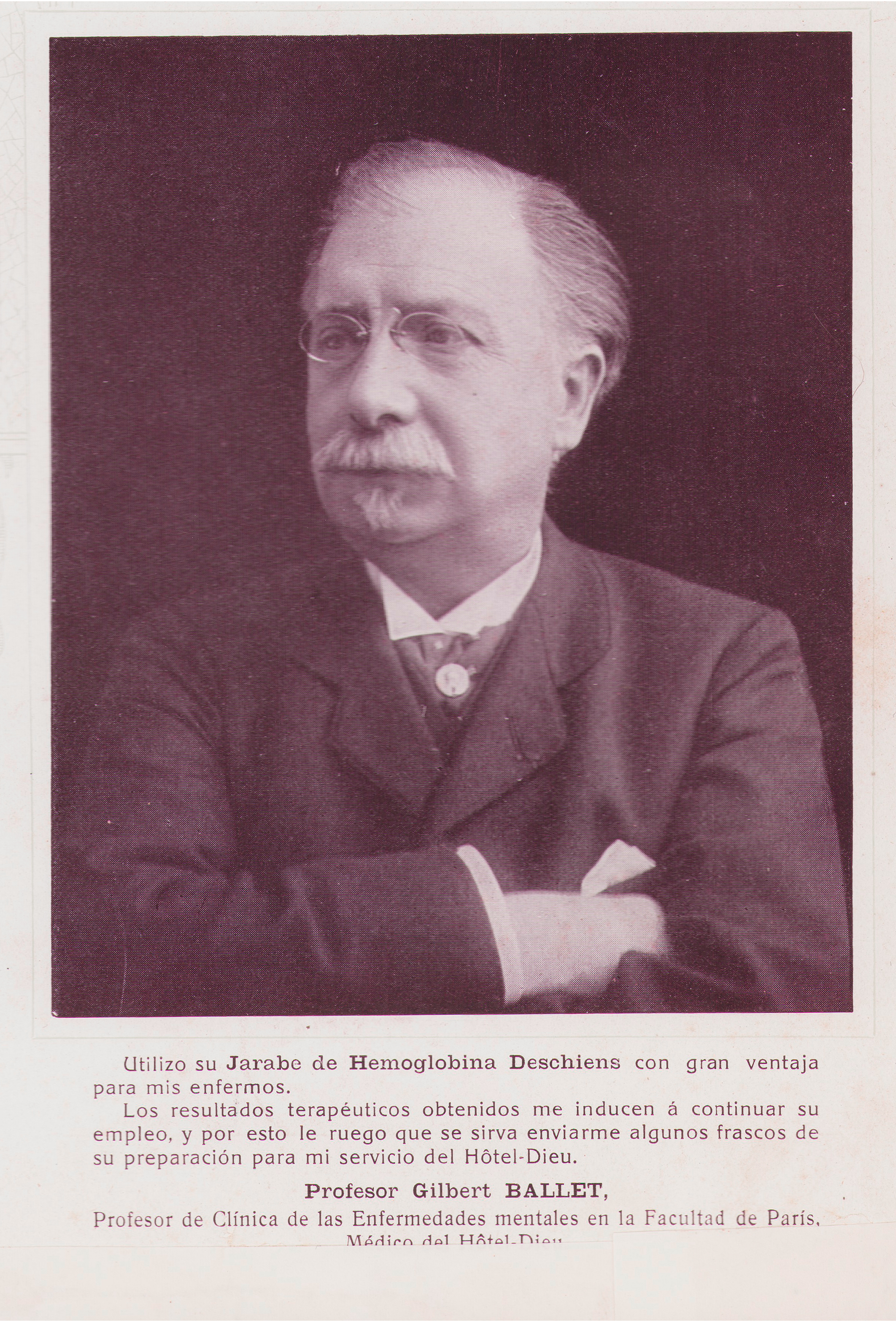 Profesor Gilbert BALLET, Profesor de Clinica de las Enfermedades mentales en la Facultad de Paris.
