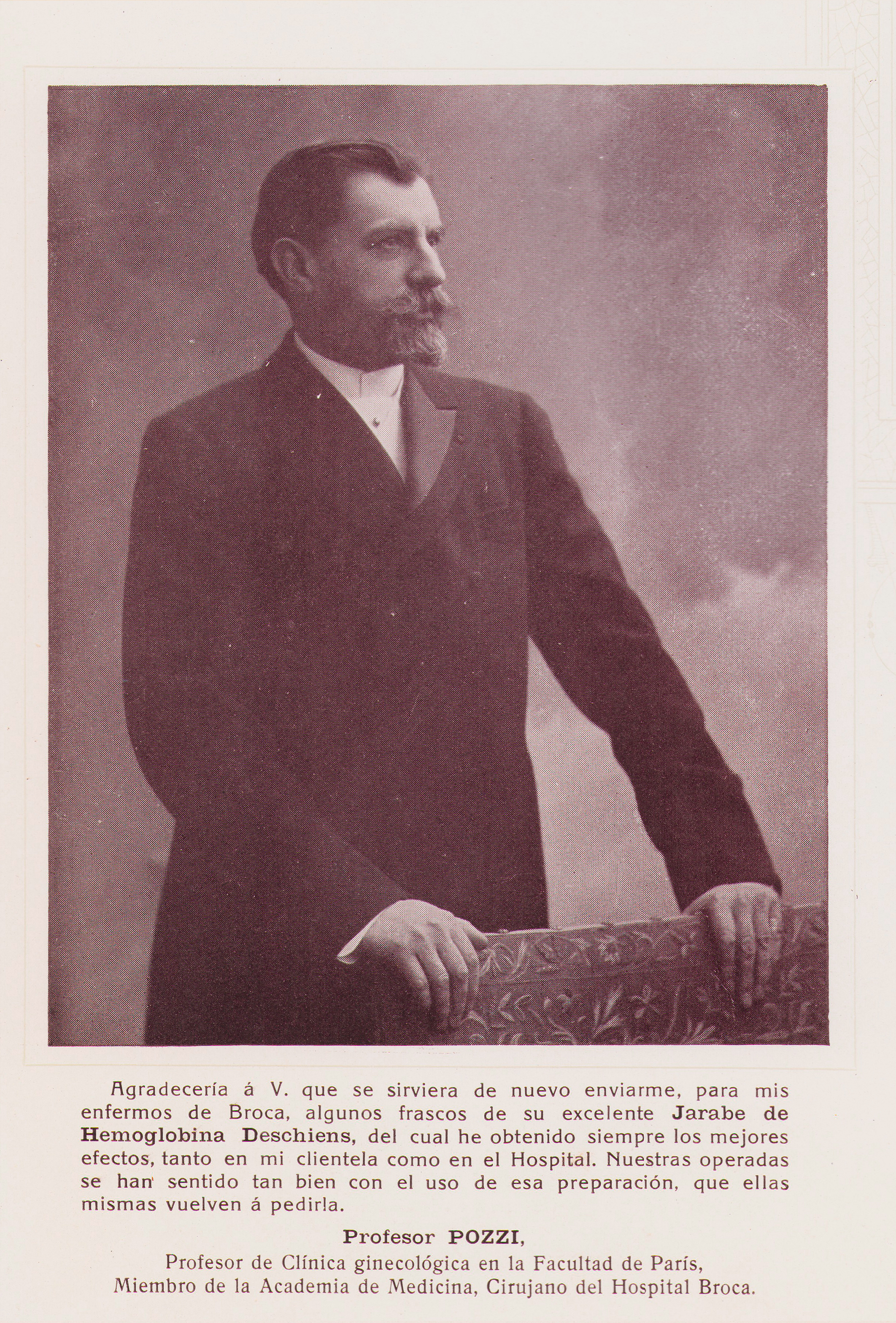 Agradecería á V. que se sirviera de nuevo enviarme, para mis enfermos de Broca, algunos frascos de su excelente Jarabe de Hemoglobina Deschiens, del cual he obtenido siempre los mejores efectos, tanto en mi clientela como en el Hospital. Nuestras operadas se han sentido tan bien con el uso de esa preparación, que ellas mismas vuelven a pedirla.