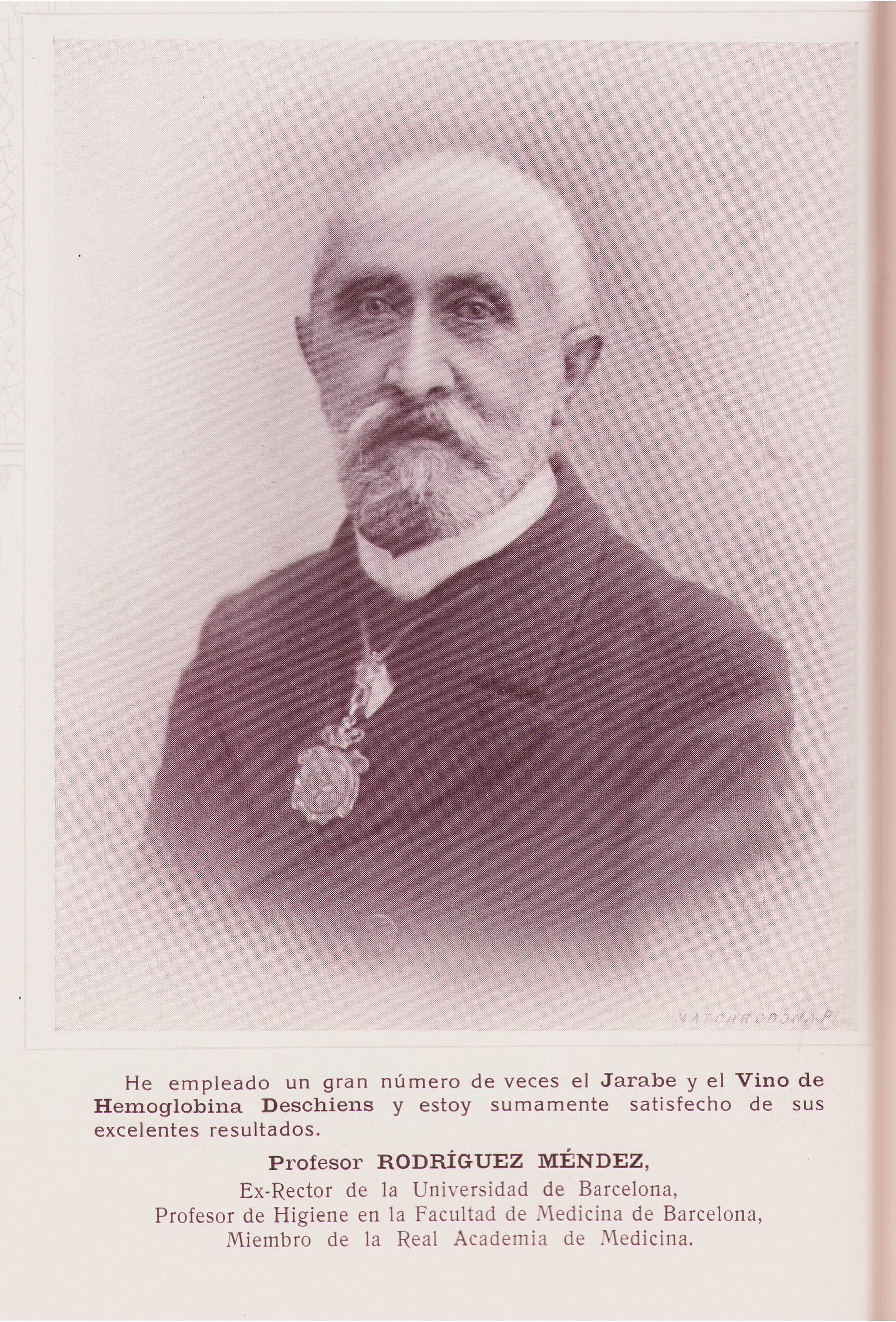 Profesor RODRIGUEZ MÉNDEZ, Ex-Rector de la Universidad de Barcelona, Profesor de Higiene en la Facultad de Medicina de Barcelona, Miembro de la Real Academia de Medicina.