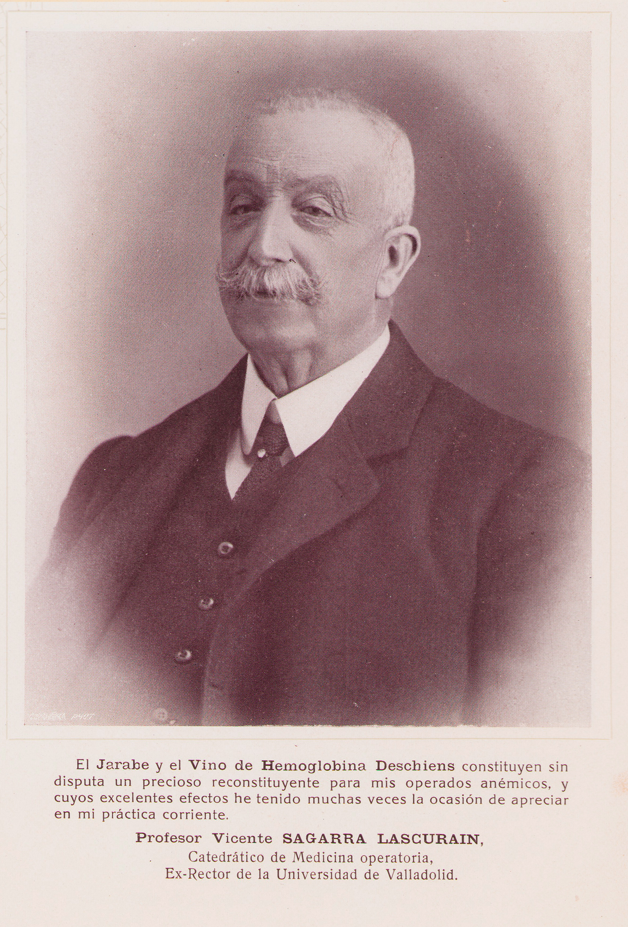 Profesor Vicente SAGARRA LASCURAIN, Catedrático de Medicina operatoria, Ex-Rector de la Universidad de Valladolid.
