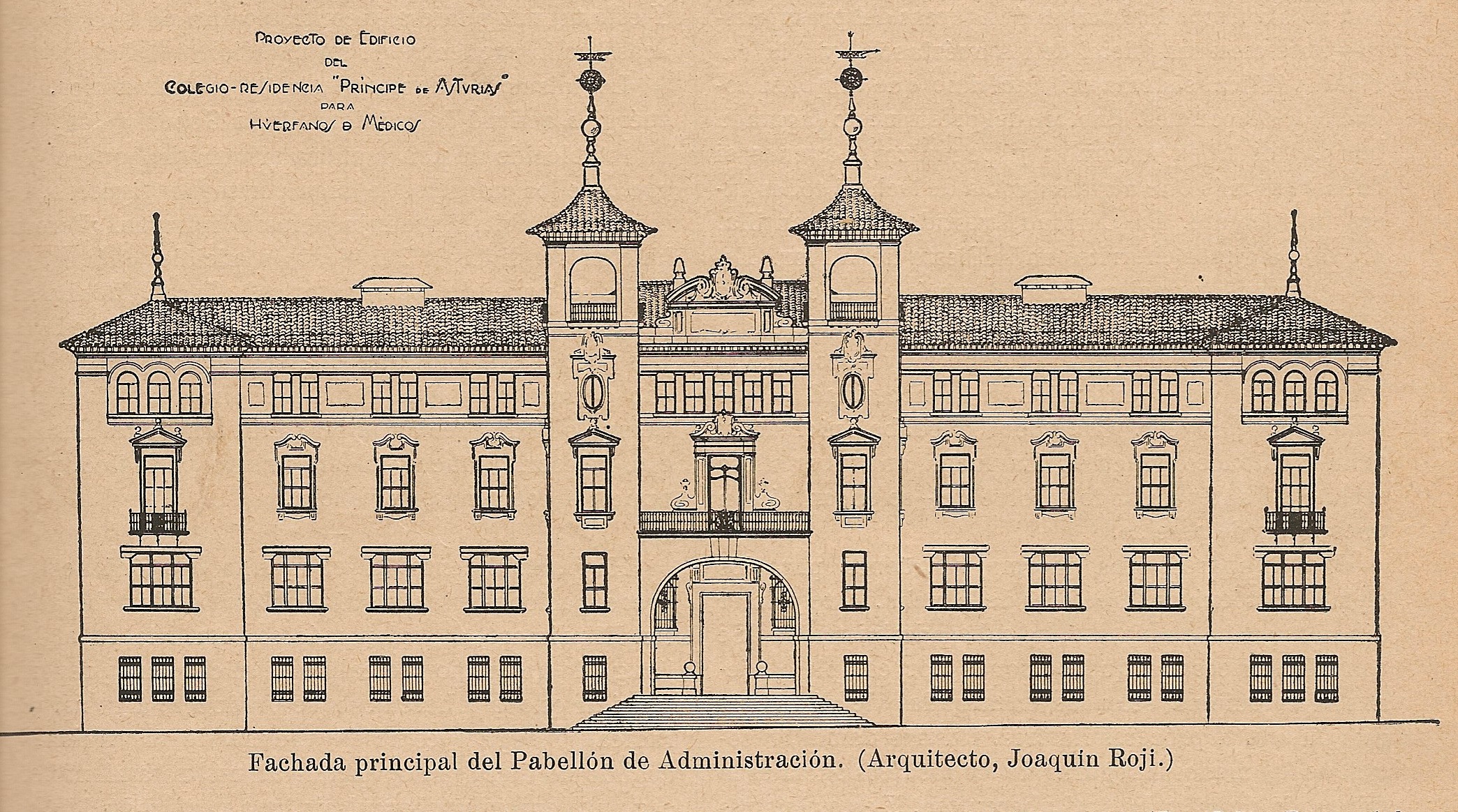 Fachada principal. Proyecto del Colegio-Residencia “Principe de Asturias” para Huérfanos de Médicos. El Siglo Médico 83, 201, 1929