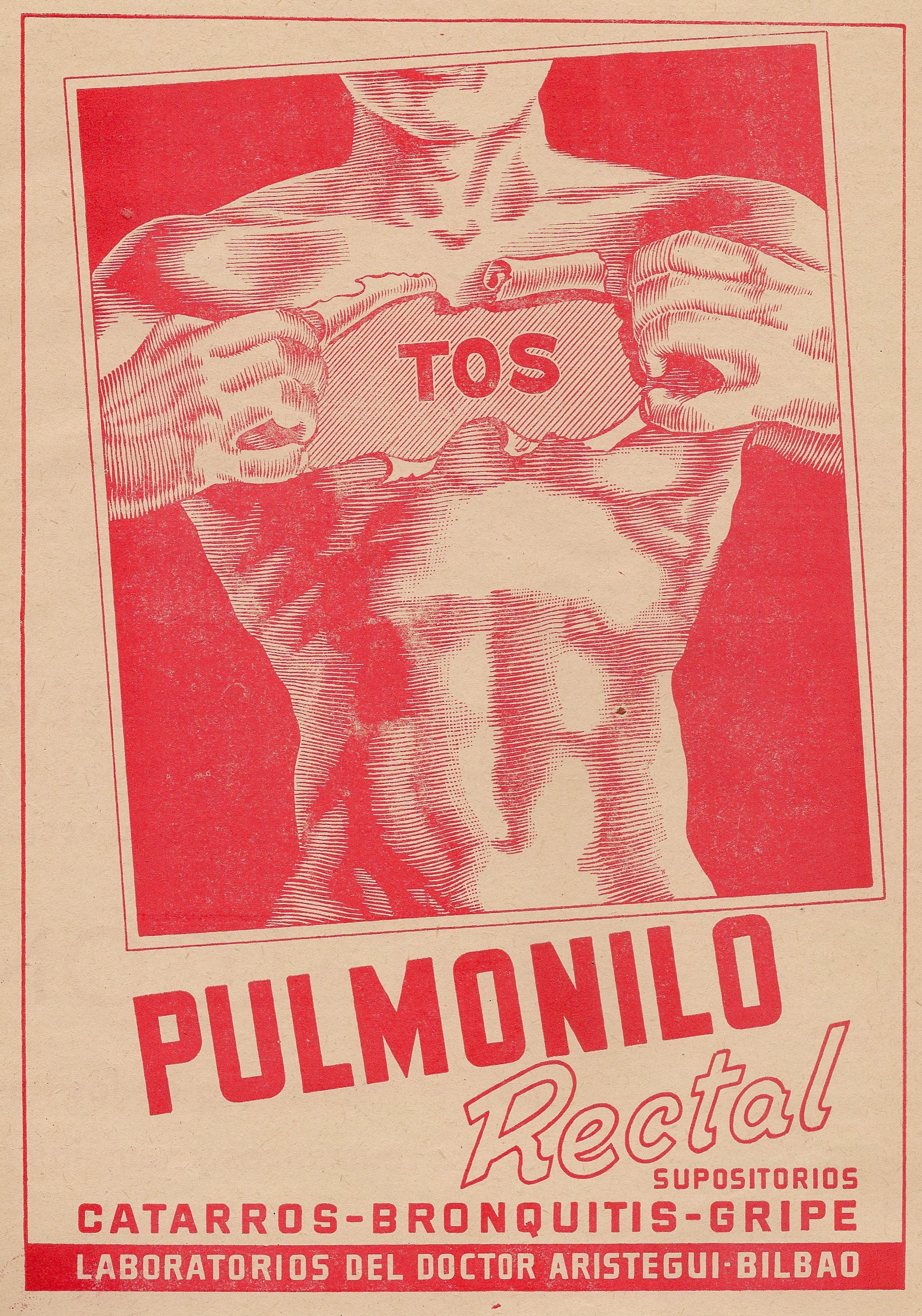 Pulmonilo rectal. Tos, catarros, bronquitis. Laboratorios Doctor Aristegui. Bilbao. Publicidad aparecida en Gaceta Médica Española. Noviembre 1953, año XXVII, número 11.
