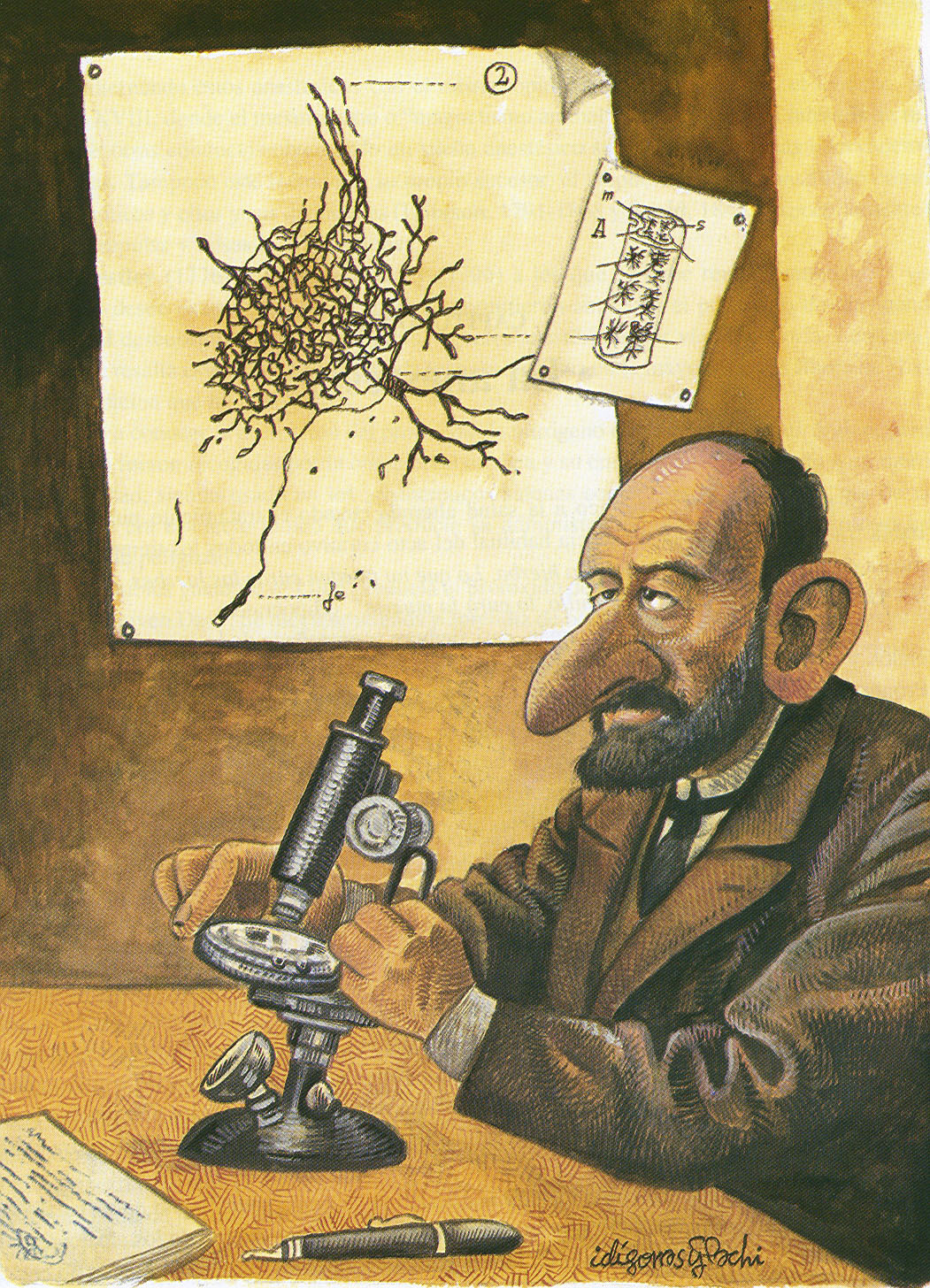 Ramón y Cajal, Santiago. Dibujo de Idígoras y Pachi.