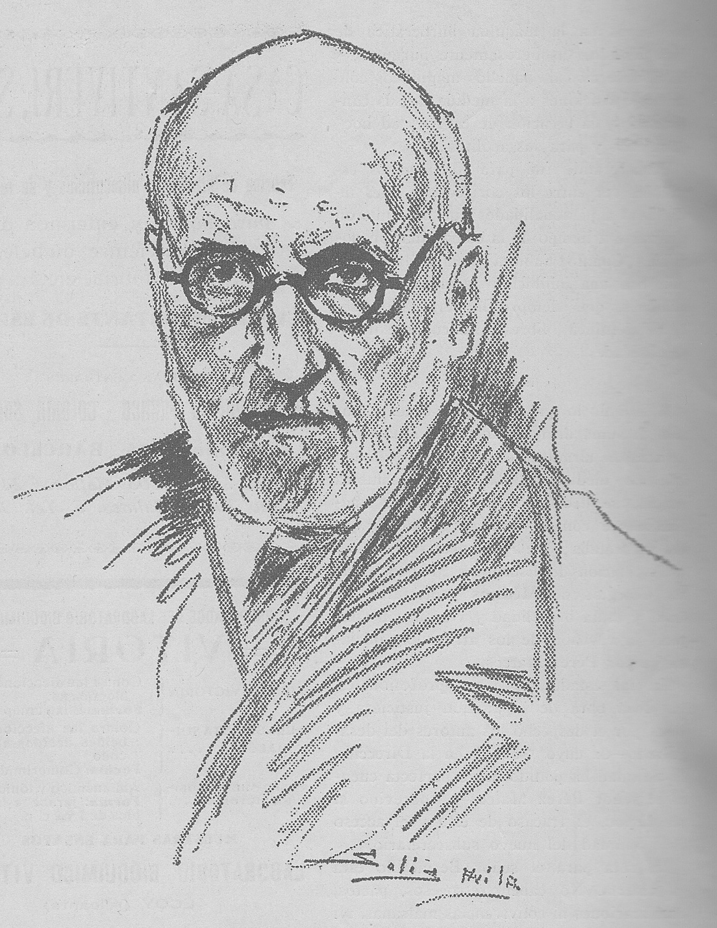 Ramón y Cajal, Santiago. Dibujo aparecido en la Gaceta Médica Española, noviembre 1934