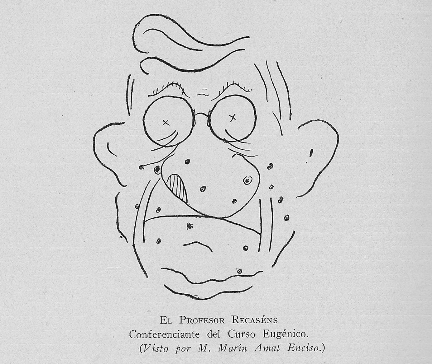 Recasens y Girol, Sebastián (1863-1933). Caricatura de M.Marín Amat Enciso. Gaceta Médica Española, marzo, 1928