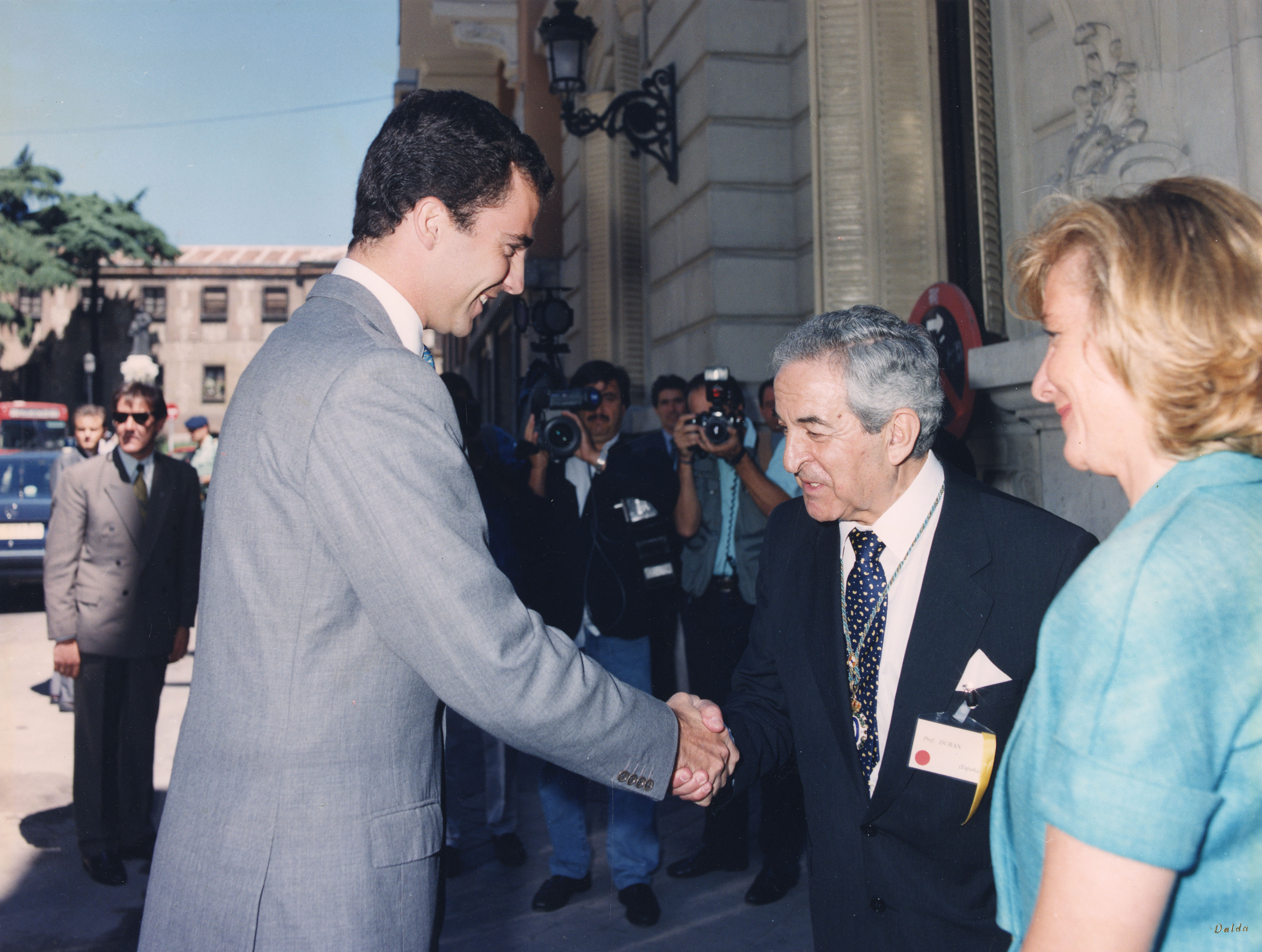 Reunión Federación Europea Academias de Medicina. El Presidente de la RANM, Prof. Hipólito Durán Sacristán, acompañado de la Ministra de Educación, D.ª Esperanza Aguirre recibe a S.A.R. El Príncipe de Asturias, D. Felipe de Borbón