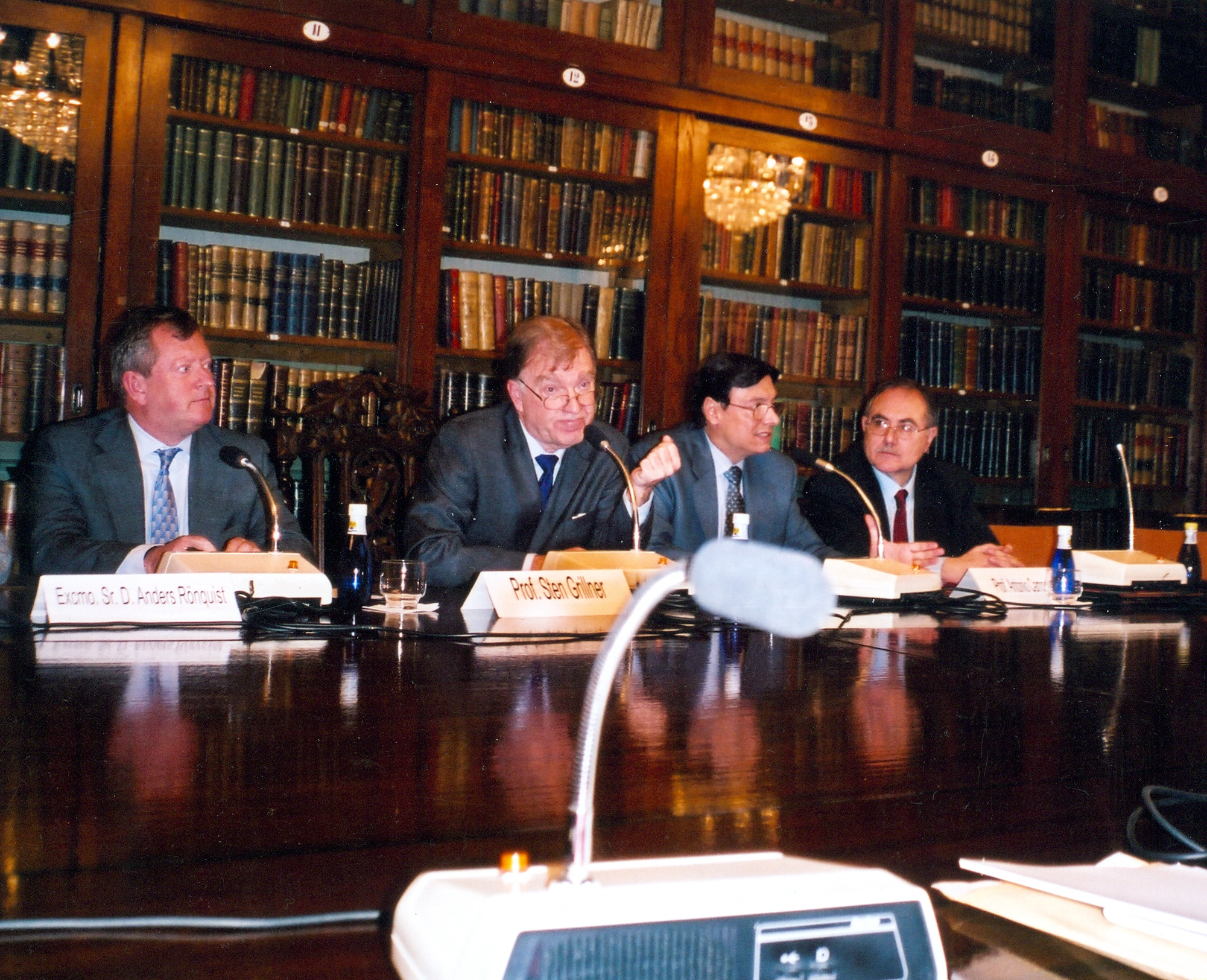Anders Ronquist (embajador Suecia), Prof. Sten Grinller (Académico de Honor RANM), desconocido, Prof. Campos (A. Número de la RANM)