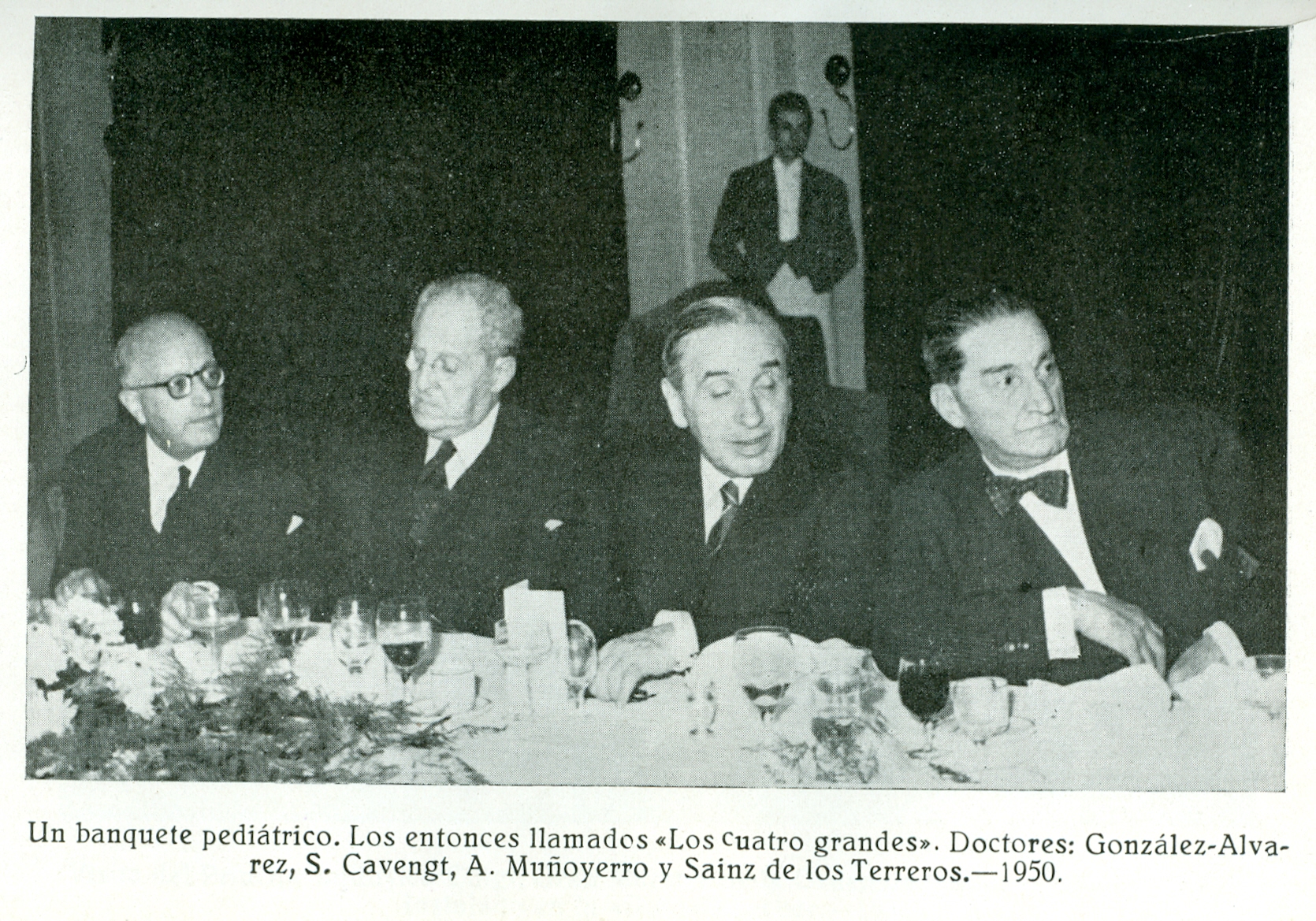 Banquete pediátrico. Doctores: González-Álvarez, S. Cavengt, A. Muñoyerro y Sáinz de los Terreros, 1950