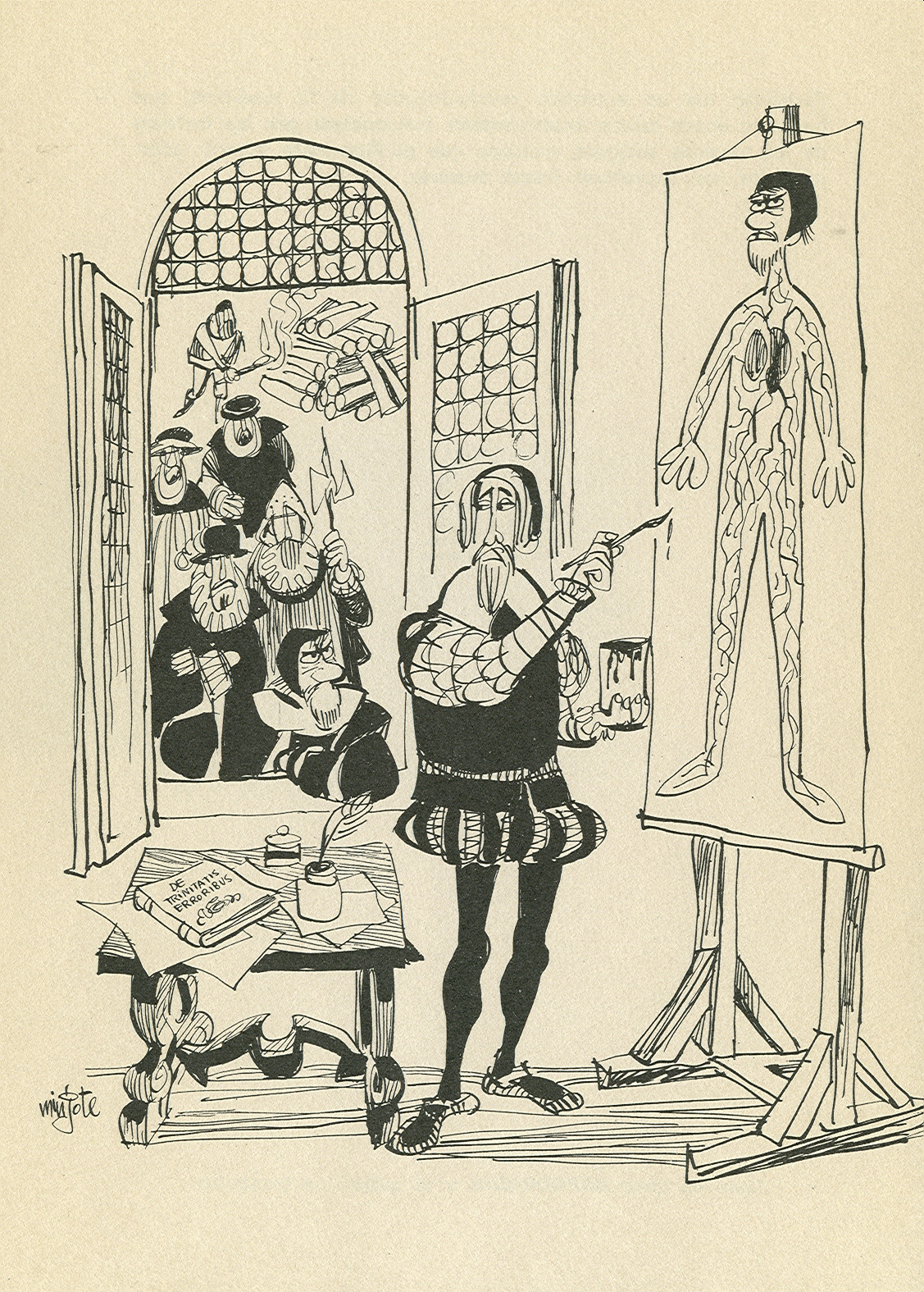 Servet, Miguel. Dibujo de Mingote