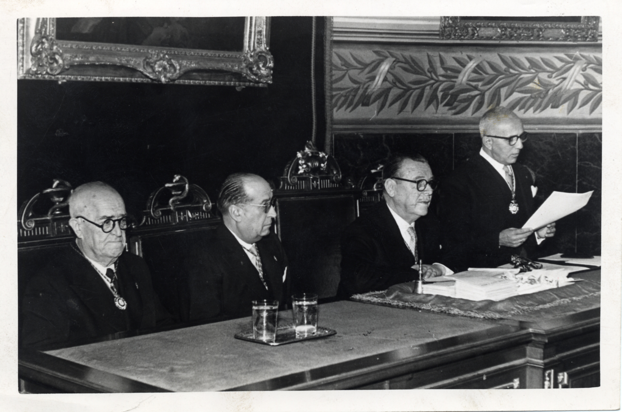 El Presidente de la Real Academia, Dr. Palanca, acompañado de los Dres. Peña, Carro y Matilla, presidiendo el solemne acto de apertura de curso