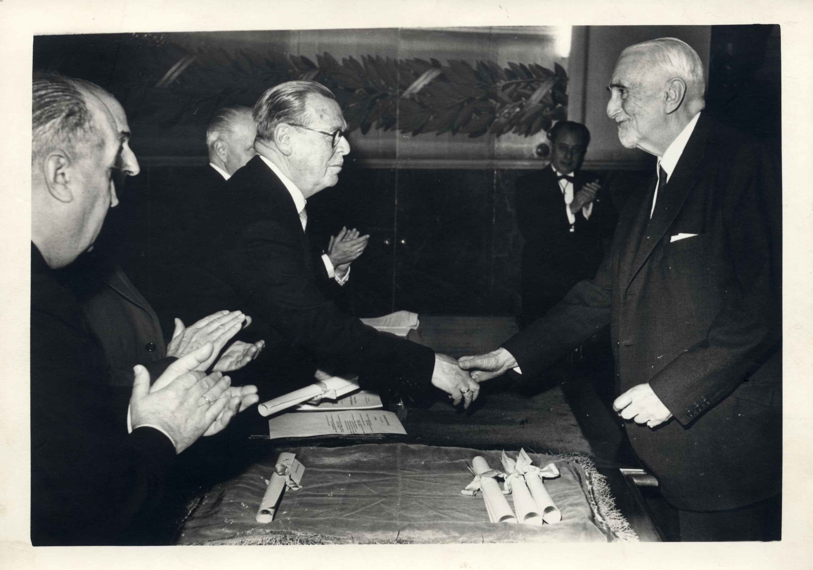 El Dr. D. Fernando Bertán Castillo, recibe del Presidente de la Real Academia el Premio Couder de manor del Dr. Palanca