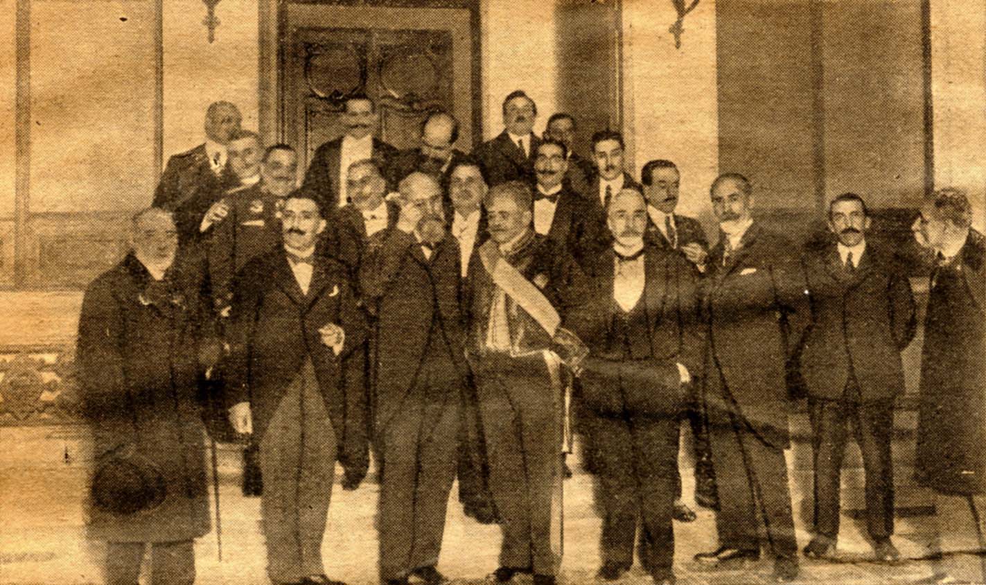 Solemne sesión inaugural de apertura del curso académico de 1920 en la Real Academia Nacional de Medicina, celebrada el 25 de Enero. El grupo de la foto lo componen la mesa presidencial del acto junto a los premiados en la convocatoria de 1919.