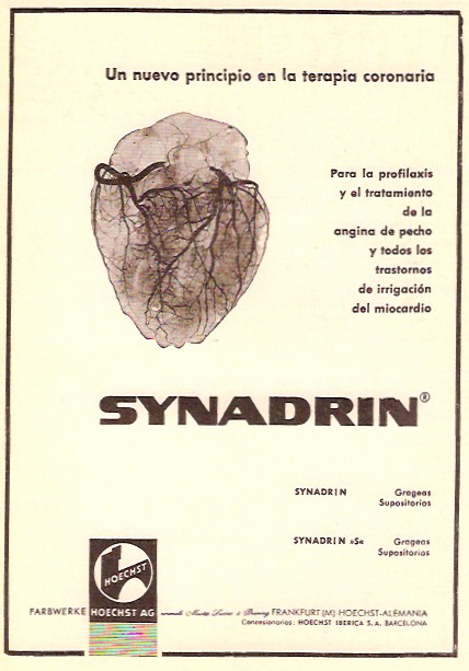 Synadrin. Profilaxis y tratamiento de la angina de pecho. Grageas, Hoechst, Alemania. Archivos de la Facultad de Medicina, 1963.