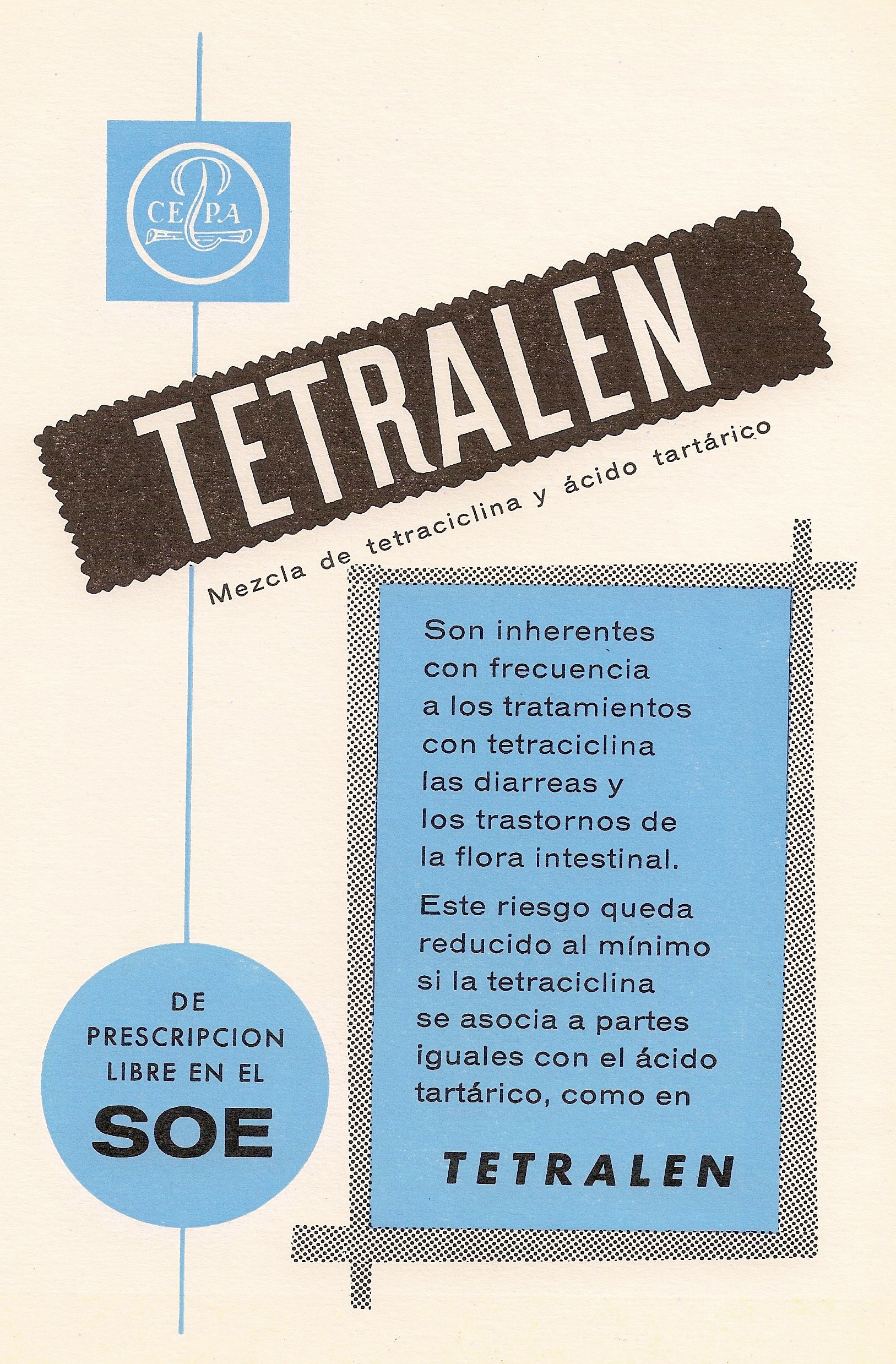 Tetralen. Mezca de tetraciclina y ácido tartárioc. CEPA. Archivos de la Facultad de Medicina de Madrid, 1965.