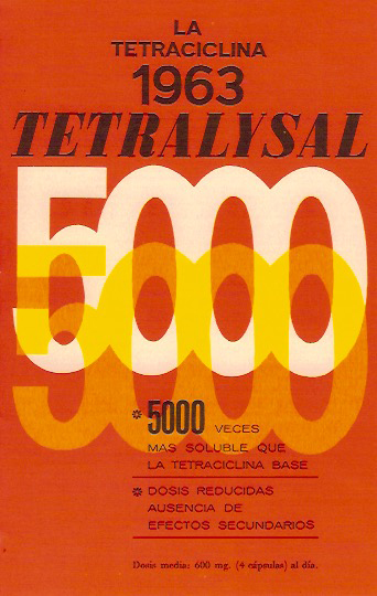 Tetralysal Tetraciclina. Encarte en Archivos de la Facultad de Medicina de Madrid, 1963.
