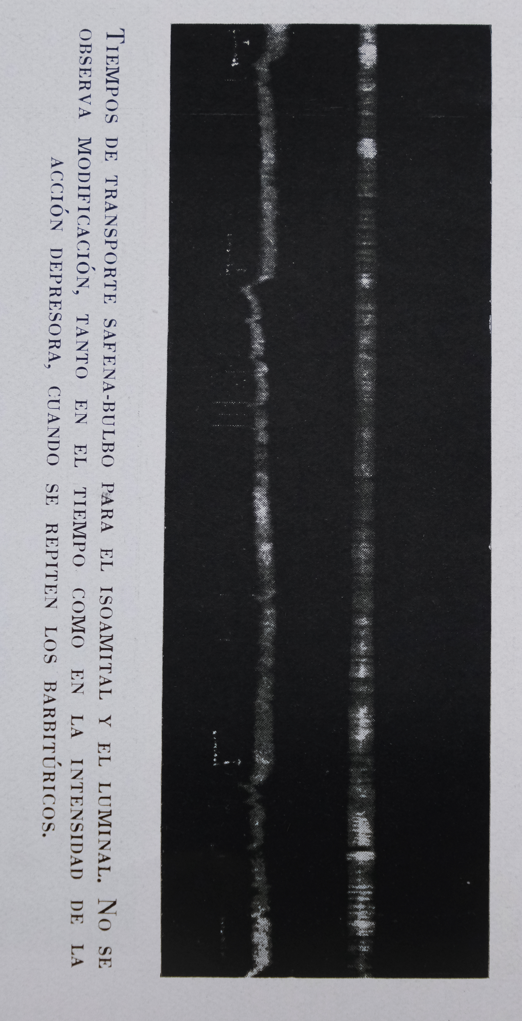 Tiempos de transporte safena-bulbo para el isoamital y el luminal. No se observa modificación, tanto en el tiempo como en la intensidad de la acción depresora, cuando se repiten los barbitúricos.