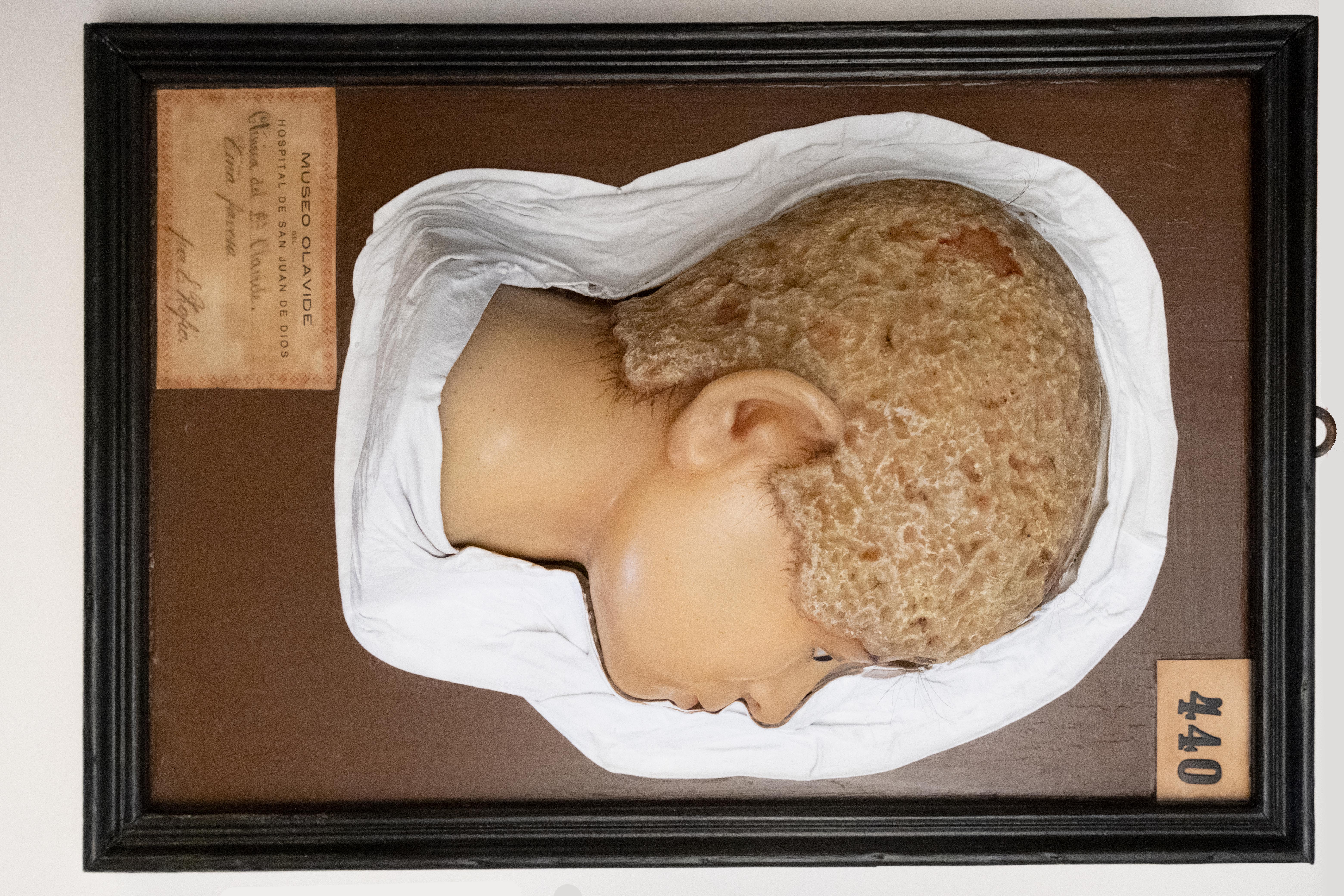 Tina favosa (Clínica Dr. Olavide). Moulage de cera enmarcado. 1889. Museo Olavide de la Academia Española de Dermatologia y Venereología (AEDV).