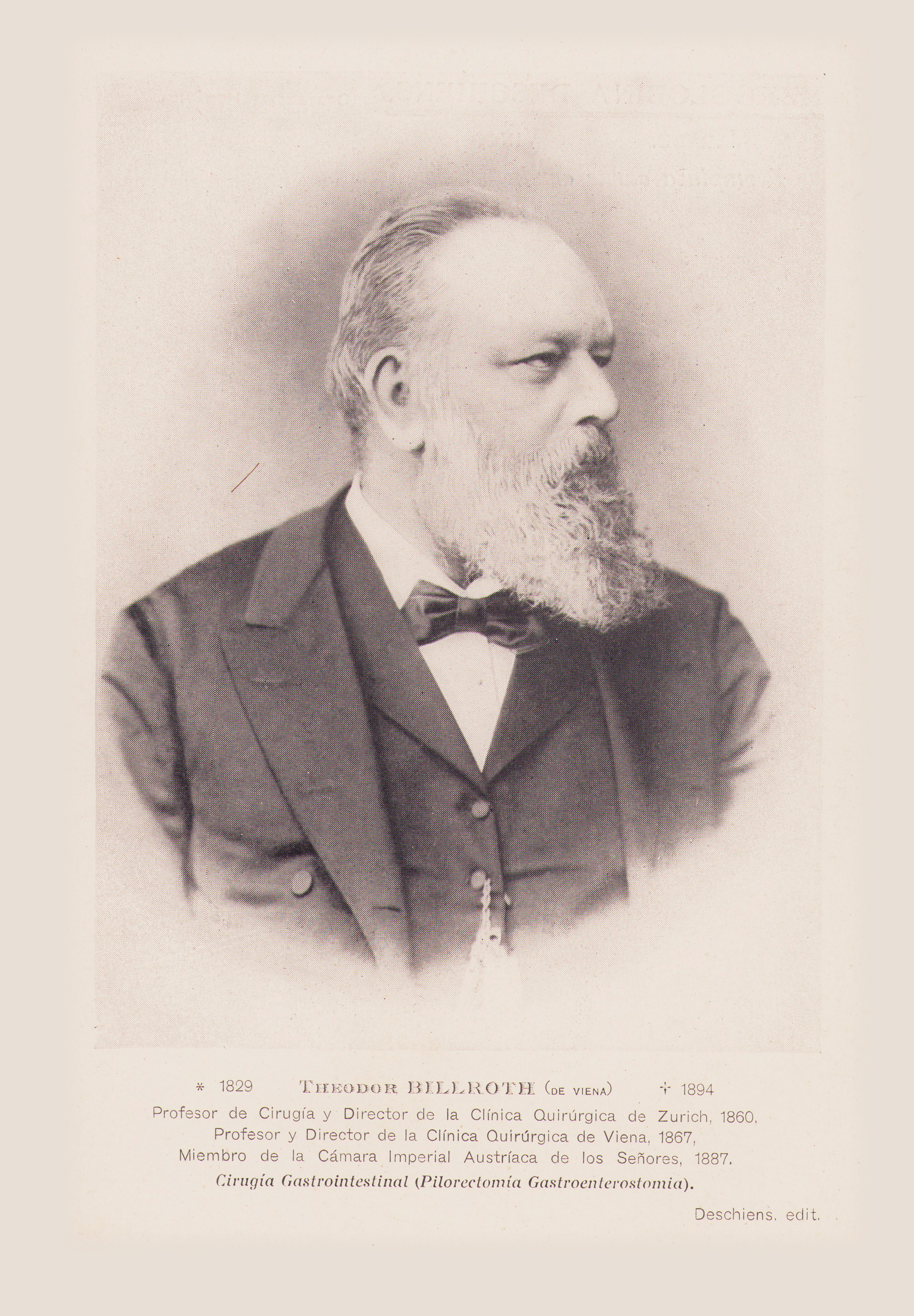 Profesor y Director de la Clínica Quirúrgica de Viena, 1867 Miembro de la Cámara Imperial Austriaca de los Señores, 1887. Cirugía Gastrointestinal (Pitorectomia Gastroenterostomia).