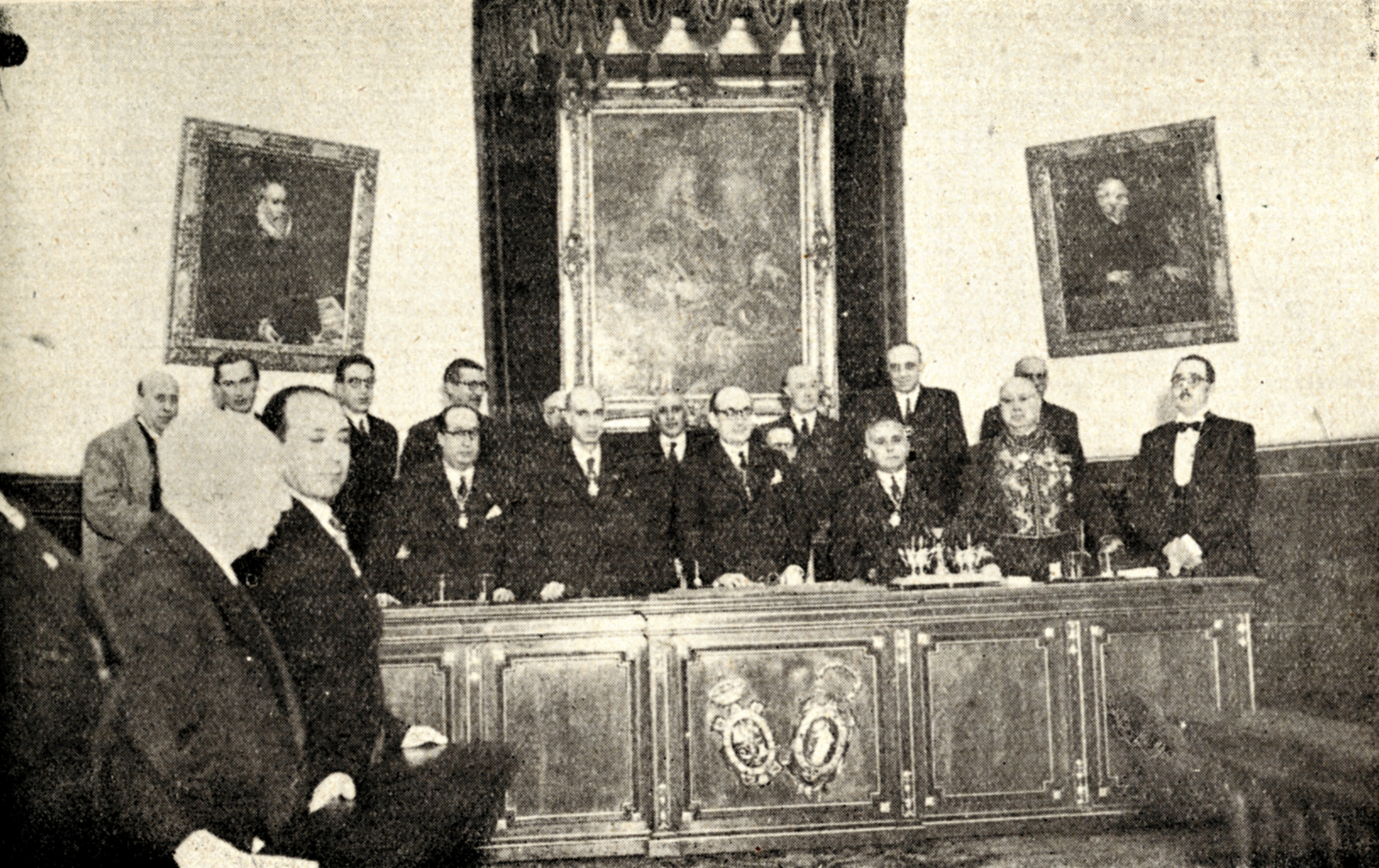 El 27 de Marzo de 1950, bajo la presidencia del Excmo. señor D. José Ibáñez Martín (centro), Ministro de Educación Nacional, se celebró la Toma de Posesión como Académico de Número de la Real Academia Nacional de Medicina del Profesor D. Ciriaco Laguna y Serrano. A la derecha del señor Ministro, el Presidente de la Academia, Prof. Enríquez de Salamanca, y el Dr. Carro, Vicepresidente. A su izquierda, el Dr. Matilla, Secretario perpetuo, y los dres. Luque y Botella. Boletín informativo de la Real Academia Nacional de Medicina, nº 5, Abril 1950