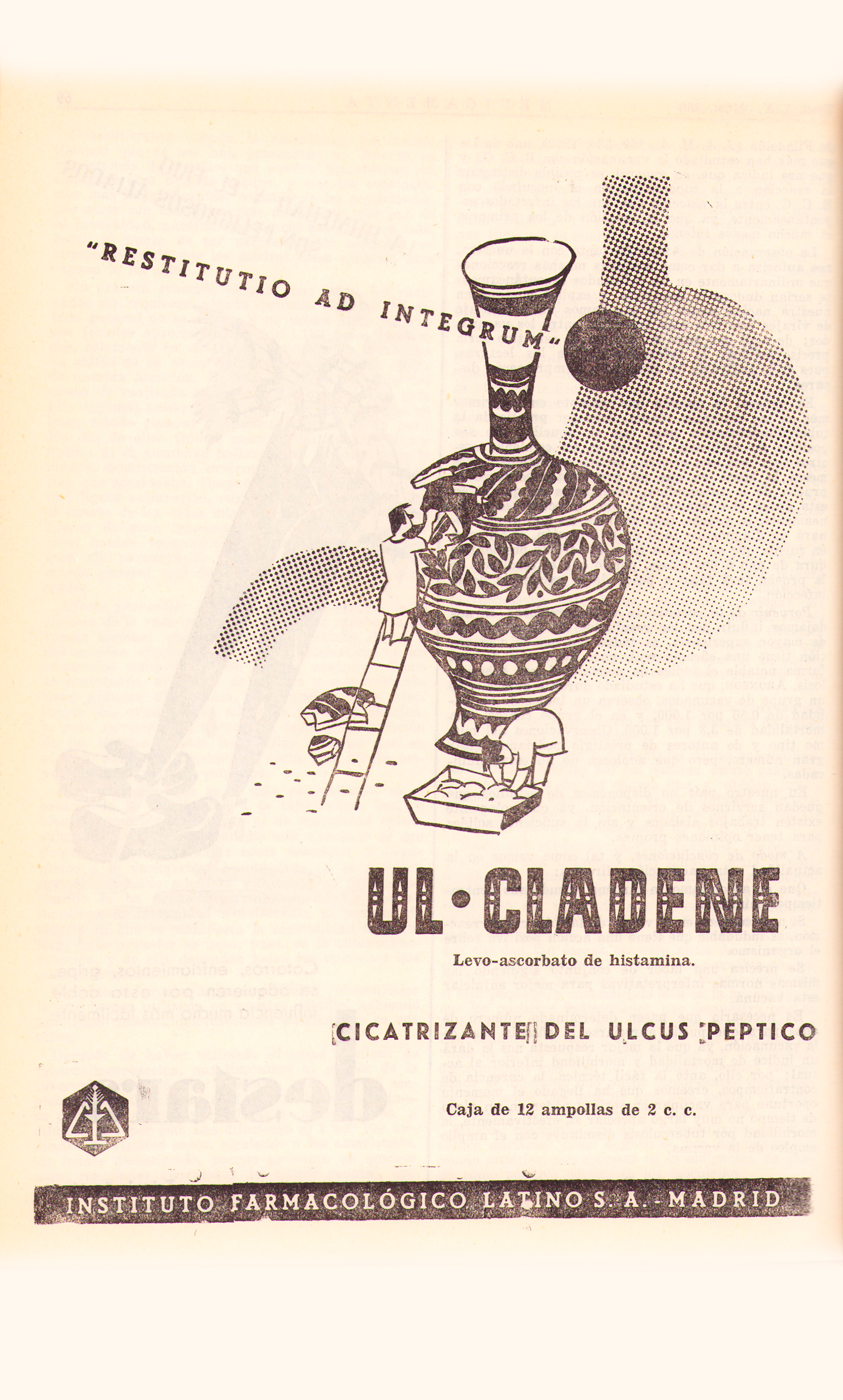 Publicidad Ul-Cladene, Revista Medicamenta, 1953