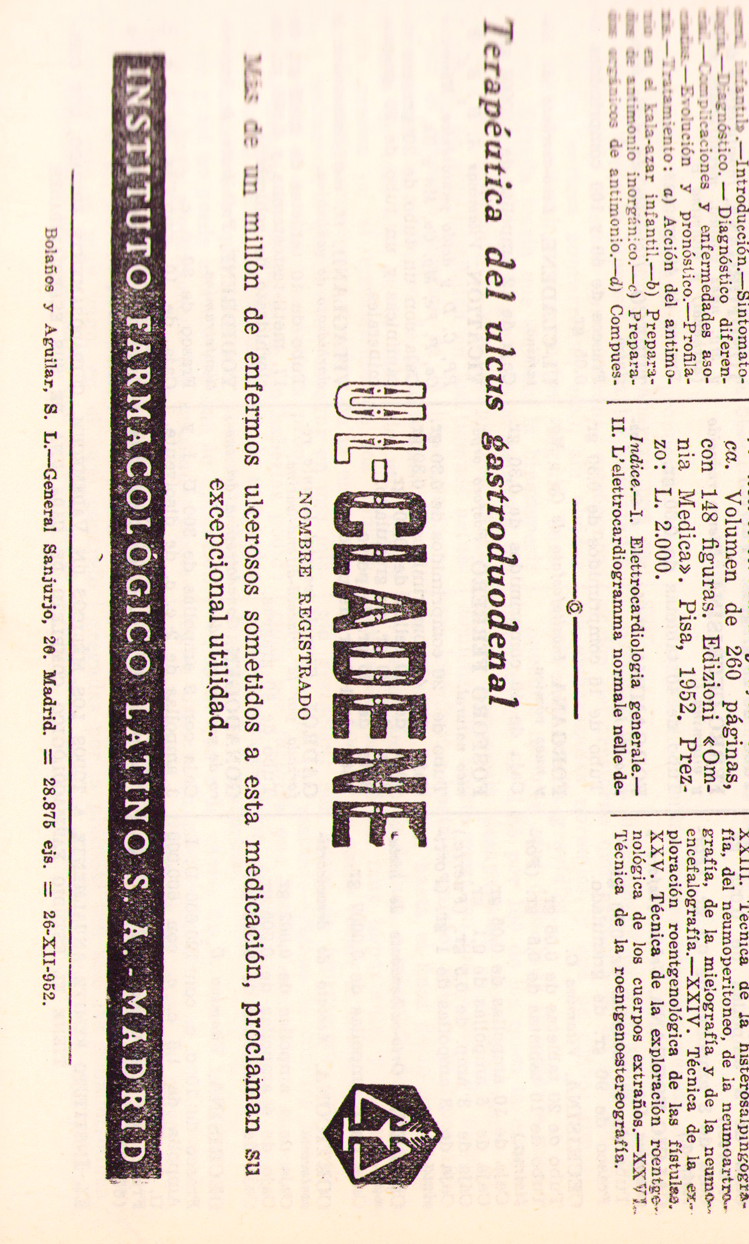 Publicidad Ul-Cladene, Revista Medicamenta, 1953