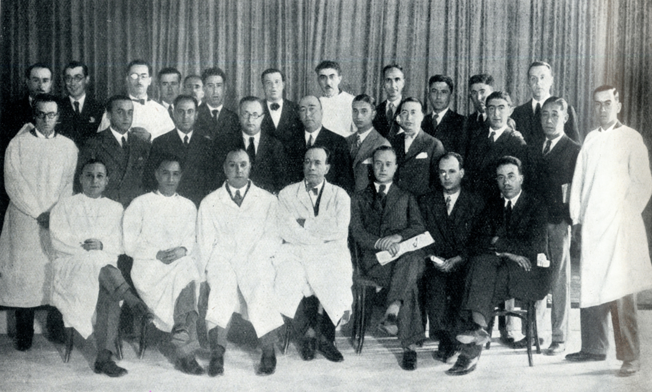 Profesores y alumnos del V Congreso de Medicina del Trabajo, que se celebró en Madrid en el Instituto de Reeducación Profesional que dirige el Dr. Antonio Oller. Gaceta Médica Española, 69, Jun. 1932
