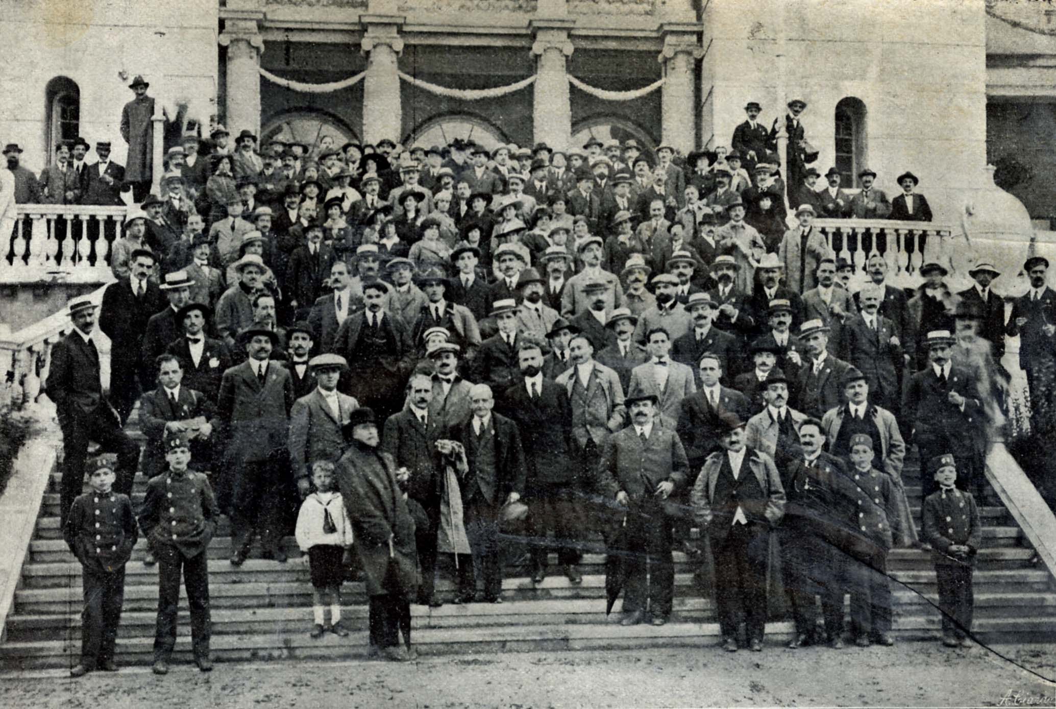 Grupo de congresistas en la terraza de Archanda durante la excursión que realizaron para visitar las industrias del Nervión.