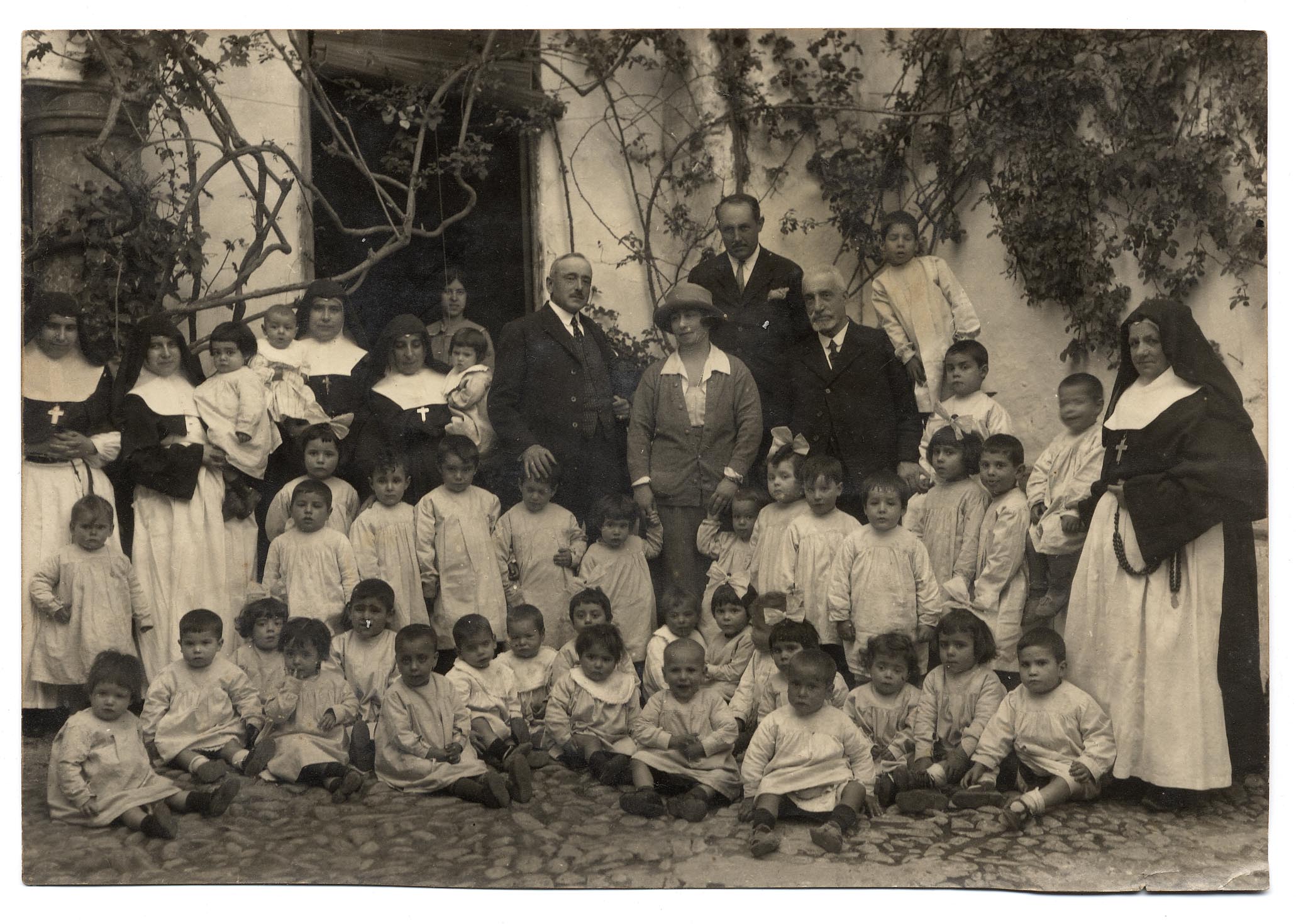 La marquesa del Mérito, el Dr. Pulido y otras personas de su compañía en el colegio de niñas y taller de mujeres obreras. Visita el día 30 de abril de 1913. En Córdoba.