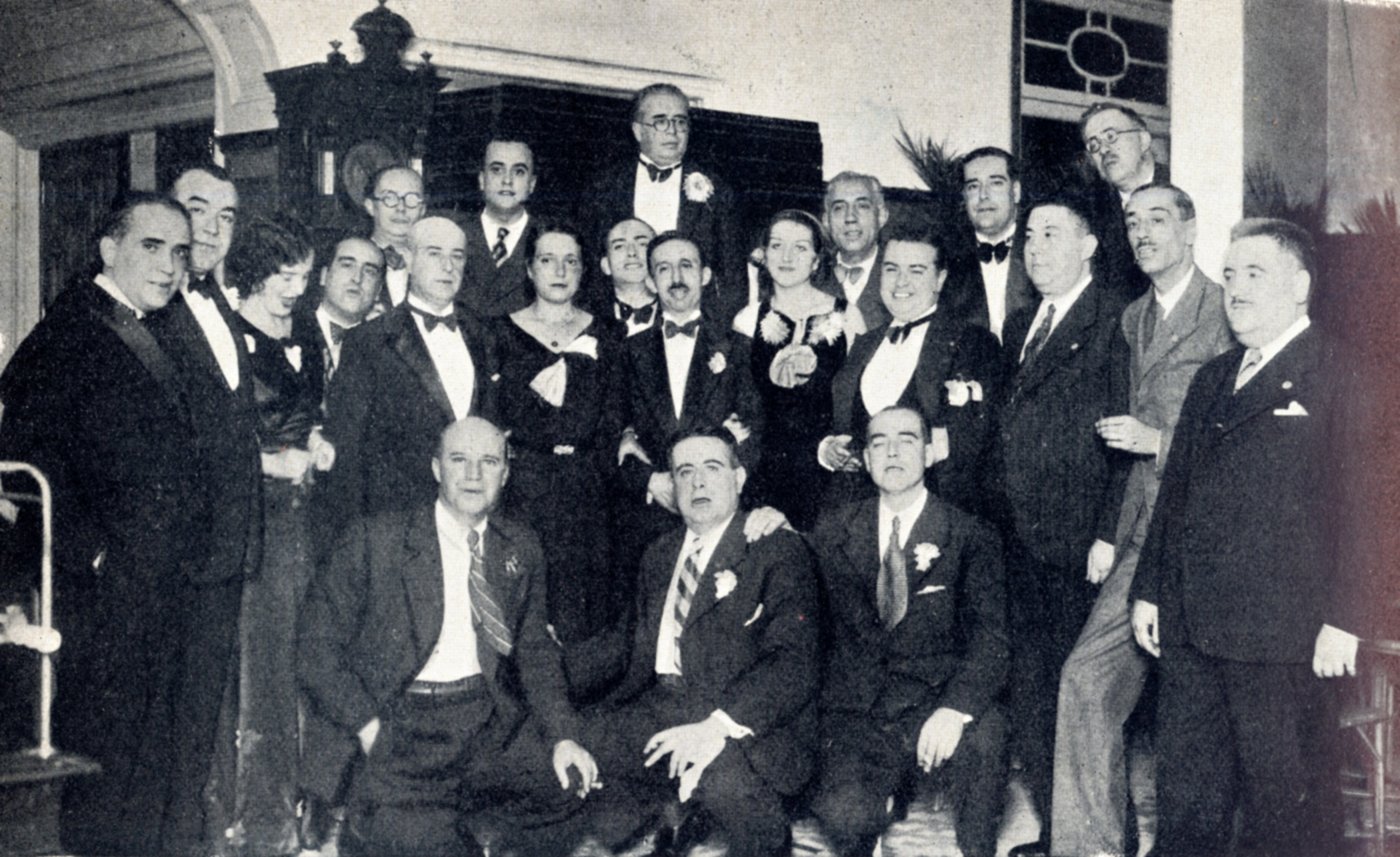 Clausura de la X Asamblea de Colegios Médicos de España. Grupo en el banquete de clausura de la X Asamblea de Colegios Médicos: doctor Pérez Mateos, señorita Irene Oresanz, doctores Diz Jurado, López Prior, etc. Gaceta Médica Española, 97, Oct. 1934